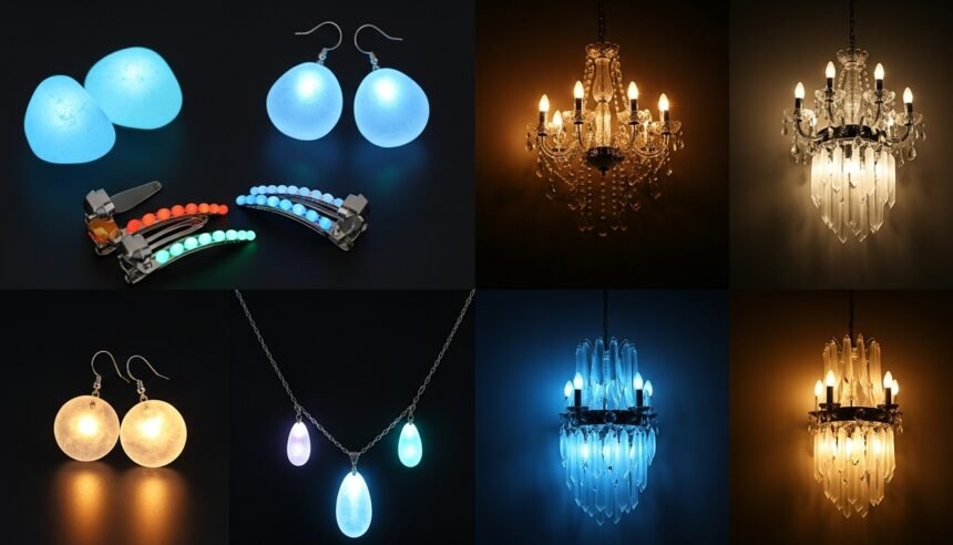 شركة الوعد تقدم لك عالمًا من الإضاءة الجمالية الفريدة — أحجار مضيئة، إكسسوارات متوهجة، حلقان وسلاسل مضيئة، توك شعر براقة، وديكورات منزلية مثل النجف والأباليك